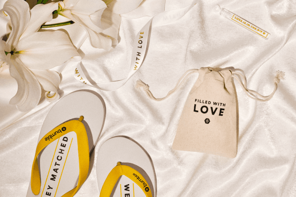 Over the years we’ve read thousands of Bumble Date success stories, and we’re always honored when a couple incorporates Bumble into their wedding day. We wanted to do something to give back to our community, so we’ve created a custom collection of wedding favors, wedding gifts, and wedding decor to celebrate couples who have found love on Bumble.