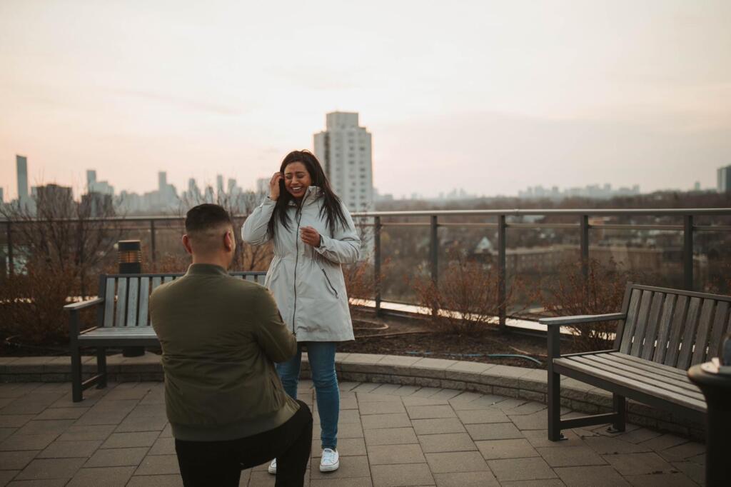 So with a solid foundation of honesty and a deep respect for one another, the pair began thinking about marriage six months into the relationship. “What’s the point of waiting, if you know you want to spend the rest of your life with someone?” Haroon says. His original plan was to take Sehrezade to New York to propose, but with COVID-19 restrictions, that wasn’t an option. It was the spring of 2020, the point in the pandemic when people were leaving messages of hope in their windows to be read from the street and neighboring buildings. One night, Haroon suggested the couple go for a walk, purportedly to visit some neighbors. During the walk, Haroon told Sehrezade to look up at their apartment window from the street. She did so, without even noticing that it said “marry me?” in sticky notes, and turned around to see Haroon down on one knee.